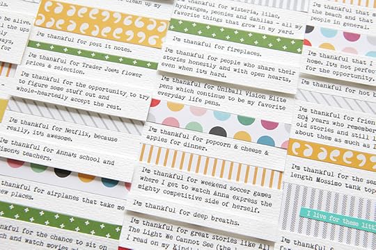 There's no right or wrong. Sometimes I've taken a hundred photos on the day of this project and other times I've ended up with 20. The more I do it the less photos I tend to take - I think that's because I've gotten better at knowing what kind I personally want to include. That said, I'm always delighted and surprised by the things I do capture on these days - magic is almost always found. Have fun. Think of it as a game - how can you demonstrate your day purely via photos? Even though I generally like to include words along with my images, it's helpful to think about what best captures the hours of my days right now. Stop it right now if you are saying to yourself that your day is boring. Your day is what it is. Document it. I don't work in a traditional office environment but I still spend quite a few hours at my desk. Each time I do this project I look for something to capture - often it's something that's the same as I've captured in the past (such as the same angle of my working at the computer) AND something that's different. I challenge myself to capture a new angle of the same stuff - it's a great way to practice and play with your photography skills. And please, please, please remember that what you deem boring today might be just the thing you wished you remembered five years from now. Perspective is key and your story is worth it. I generally enjoy using my "big" camera for this project because even though I love the convenience of my phone - and it's what I use most regularly - some of my most favorite everyday life shots have come during this project day and the quality of my bigger camera is really hard to match with the phone. But, as is almost always the case, the best camera is the one you have with you. Give thanks. Look around you - there is so much to be thankful for. Use your lens to capture that along with your regular routines. If you have trouble remembering, set an alarm on your phone to go off at specific intervals. Even if you stopped what you were doing each hour you were awake and took one photo of what was happening in front of you at that point in time would be so awesome. The last few times I've done this project I've liked noting the times of things. The numbers make great embellishments in the finished project.