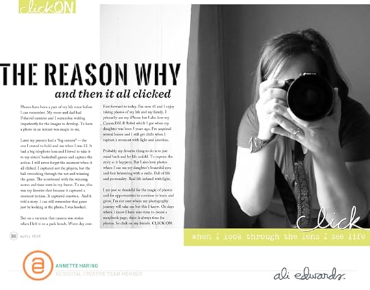 Annette Haring // Love how Annette took two pieces of word art and enlarged them to create her title. And of course I always love stories of the reason why.