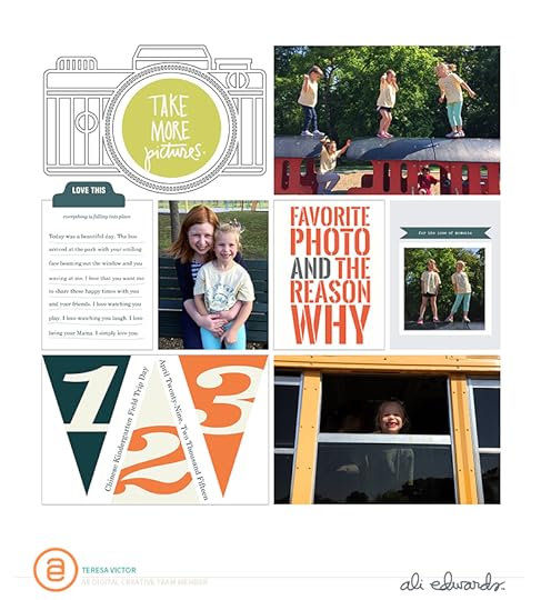 Teresa Victor // I really liked how Teresa enlarged the number banners and how she placed the "take more pictures" circle embellishment inside the camera.