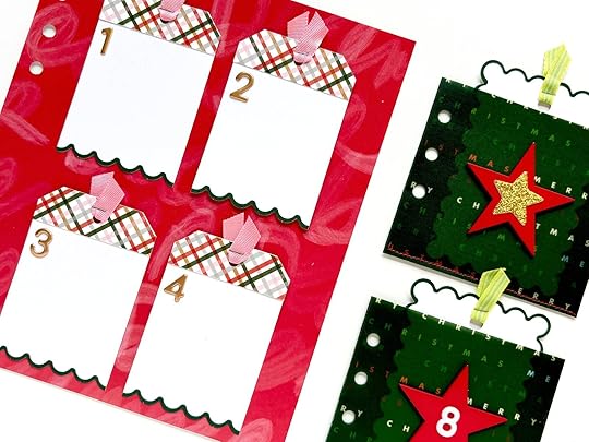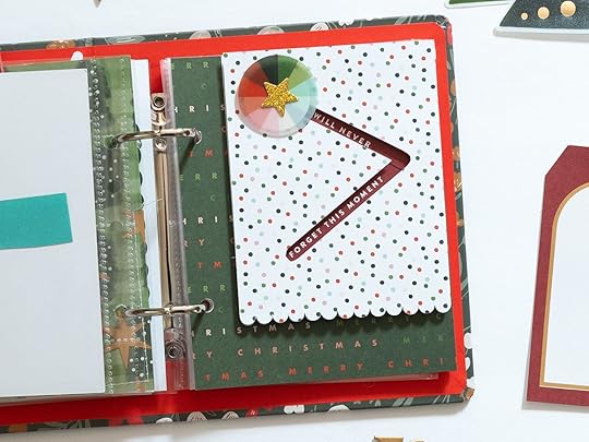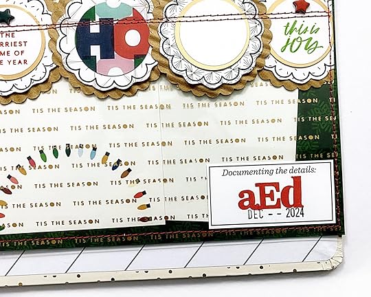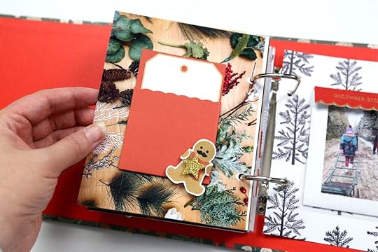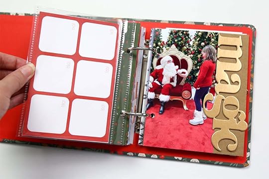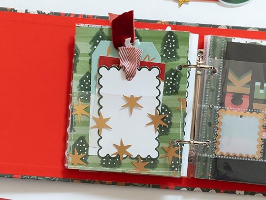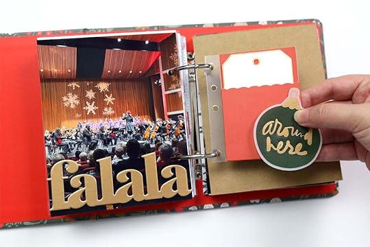 But before we get to that, I wanted to show you an example using last year's album of how cute they look when you simply slip them in a pocket. I love the contrast between the scalloped edges and the straight edges, and the little peek at the next page it gives you!