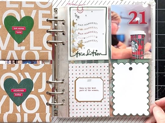 My daughter, who’s 9, has been dabbling in holiday journaling for a couple of years now and has seen me work on my own album every December with interest. Last year, I was touched when I found her