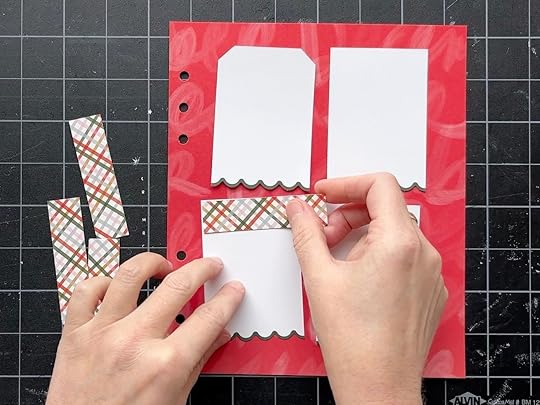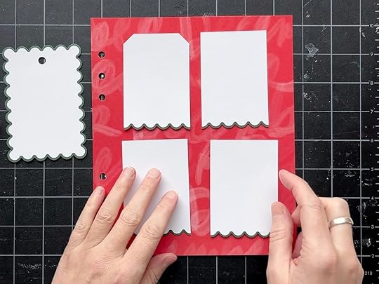 PROJECT ONEMy first idea was to actually cut down the tags so that I could fit four on a 6x8 page. I love the look of just a hint of a scallop on the bottom of each tag. Watch the process video below to see how they come together and then check out a few photos of the project in process as well as the final layout.