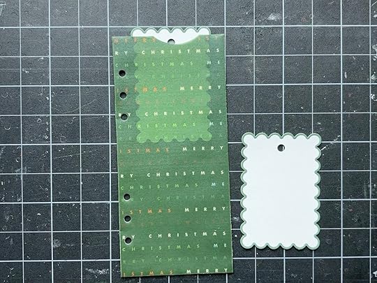 PROJECT TWOFor my second project, I really wanted to find or make a pocket for the scallops to peek out of. The only pocket I could find in this year's collection that fit this tag is the 3x8 vellum pocket from the envelope bundle. While these tags are way too short for that pocket, I really loved how they looked inside, so I decided to make it work by transforming it into two pockets!