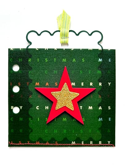 I embellished the pockets with some wood veneer stars, gold glitter stars, and a white puffy number. I also added a pop of bright green ribbon.