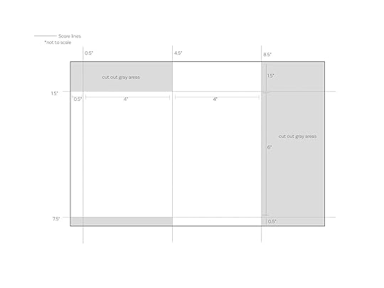 To construct the envelope, I scored the paper horizontally at 0.5”, 4.5”, and 8.5” and then vertically at 1.5” and 7.5”. Here is a diagram that I made which shows the measurements.