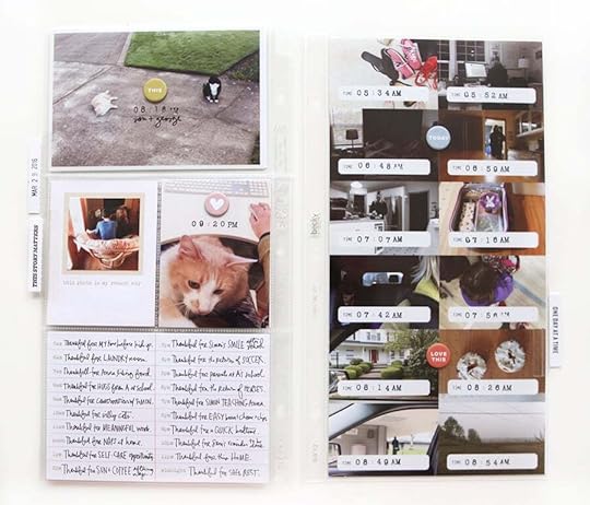 As with all projects, there isn't a right or a wrong. I've done this project as a traditional scrapbook layout, in a Project Life spread, as a mini book in a couple sizes, using layered templates, and added into a 6x8 album. Sometimes I've used a timeline, sometimes I've used different themes/lenses to guide my documenting (such as gratitude or -ing words), and sometimes I've just taken photos over the course of the day. This is 100% a project that can fit into your season of life.