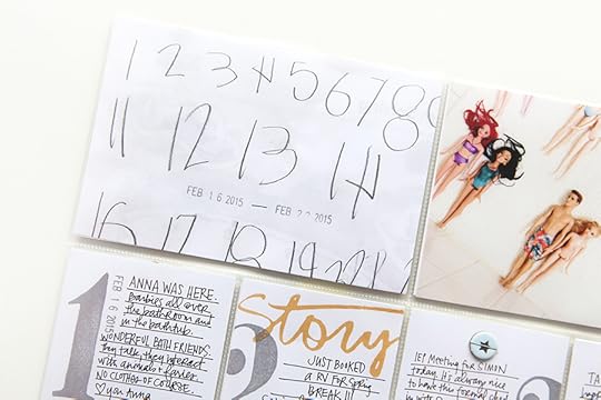 SUPPLIESTim Holtz Number Stamps (Amazon or also available at Simon Says Stamp )Magic Story Kit™ (gold paint, story silkscreen, chipboard accent)Gray Flannel Memento Luxe InkMorocco Orange Memento Luxe InkAli Edwards' Celebrate Stamp SetAli Edwards' Photos Stamp SetWeek In The Life™ Stamp Set6x8 Divided Page ProtectorsWood Veneer StarBrother Sewing Machine