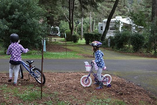 As soon as we started unloading the kids were off to explore on their bikes. I'm so glad we decided to bring the bikes. We went back and forth a bit and ended up renting the bike carrier attachment for the back of the RV and then stored the girls bikes underneath in some of the storage areas. Next time it will be more awesome for Anna because she will be done with those training wheels.