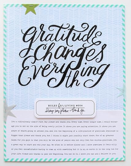 It's a ridiculously simple rule. Say please and thank you. Every time. Every single time. I would encourage you to err on the side of being overly polite. It shows you are paying attention. It shows you are aware of what's going on around you. And it's the beginning of a life-practice of gratitude. Gratitude is bigger than please and thank you, but I think it might just possibly start there. One of my greatest hopes for you guys is that you will be the kind of people who not only feel but express gratitude. It's a great way to start and end your day. We often do it before dinner and I know sometimes it feels silly or you feel uncomfortable having to come up with something but it is so, so worth it in the long run for your life. Please and thanks is just the beginning. You can do it. I know you can and I believe in you.