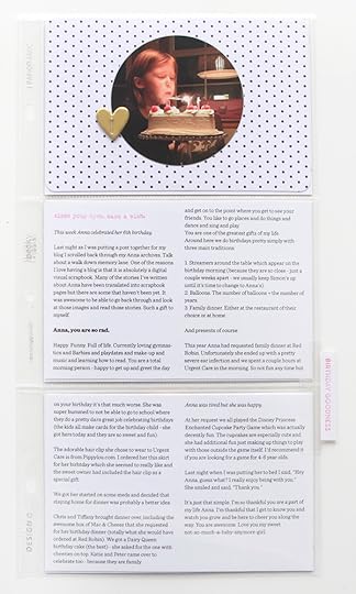 That black and white dot card at the top was included with the Cirque Project Life Kit. There was a circle printed on the design (that I think said February) as well but I decided to use a circle punch to cut the photo of Anna blowing out the candles and adhere that on top.