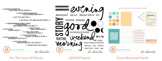Check them out here: For The Love Of Words, AM/PM Digital, and Great Story 3x4 Cards.