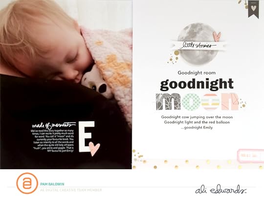 Pam Baldwin | I love Pam's use of a large initial + the "made of moments" word art + her story. I also like how she parked that with a page that let her play with larger sized type.