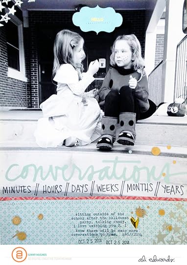Ginny Hughes | Such a sweet moment captured here. Love the combination of "conversations" + the minutes // hours // days word art. I also love how she added stars to opposite corners of the page.