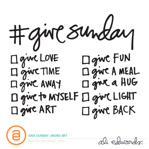 To help you start thinking about ways to give I designed a #givesunday word art set with a checklist. It includes a 4x6 card, the title and the checklist (because, you know, we document).