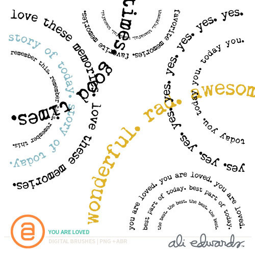Carly Robertson | I totally love how Carly created this page by first creating a background pattern with the "I want to remember" brush and then laying a colorful photo with "today you" on top. Love this whole design.