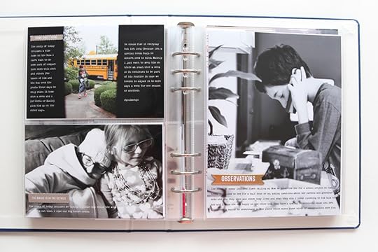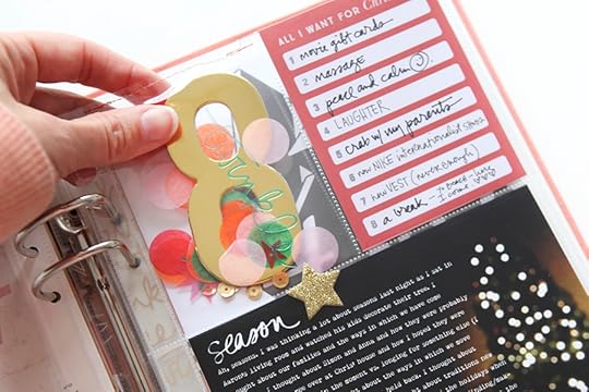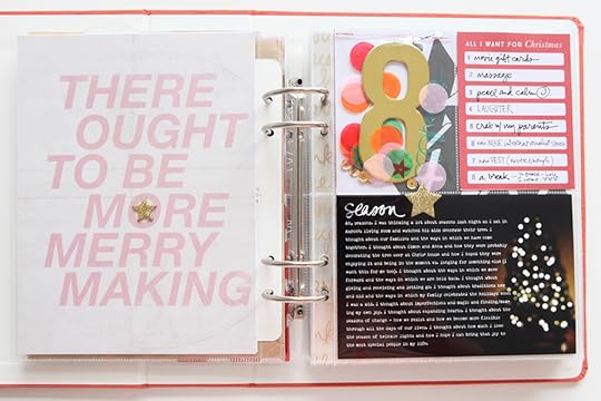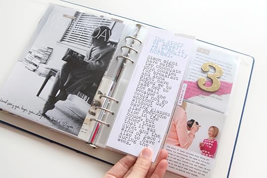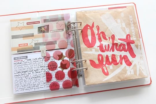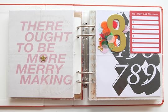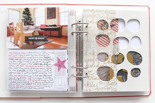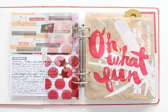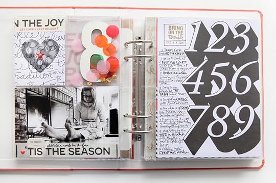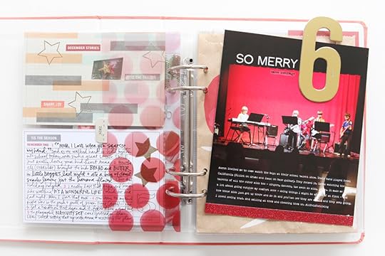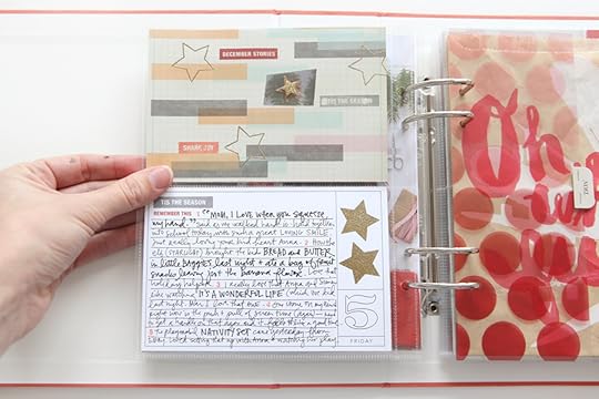 December Daily® albums I've done a lot of mixing in different textures and page sizes. I really do love having a mixture of page protectors + things outside of the pockets such as photos adhered back to back, artwork, unique sizes, etc. They just add interest and they are fun to put together.
