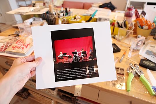 I stuck with that and decided to enlarge a photo with journaling on it (via Photoshop) to fit inside the bag.