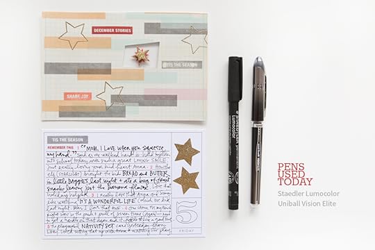 Staedler Lumocolor (Wilna mentioned this previously on a podcast and I had to try it and I really like it and hope to have it in my shop sometime soon) and the Uniball Vision Elite. The Uniball pen is not a specialty archival pen - it's just my favorite regular old pen.