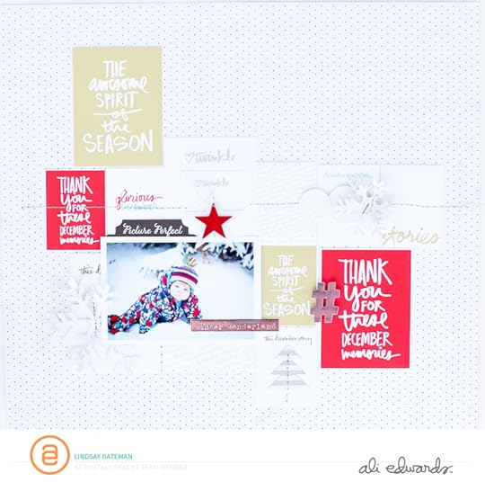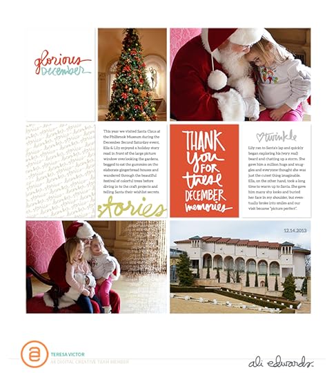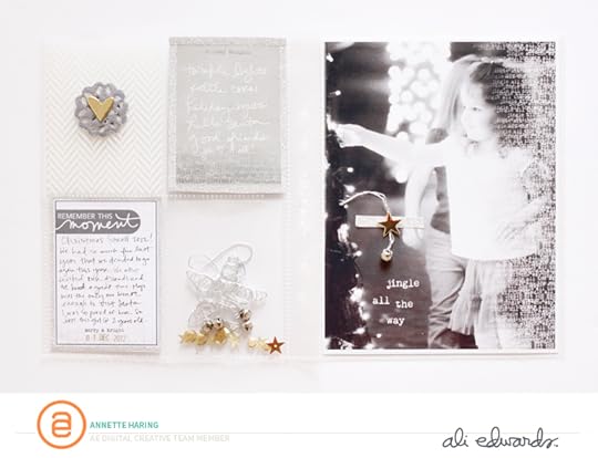 Annette Haring | Love this page from Annette's December Daily that includes the text overlays on top of her 6x8 photo. Love that silver and gold and gray color scheme too.