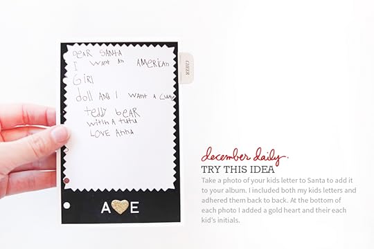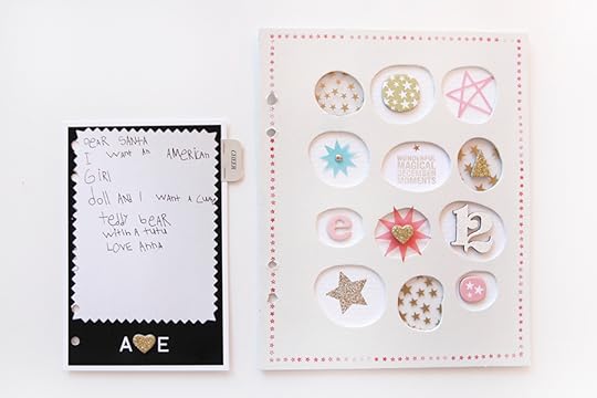 Day Twelve is a combination of two photos adhered back to back (photos of my kids notes to Santa) and the full page die-cut chipboard.