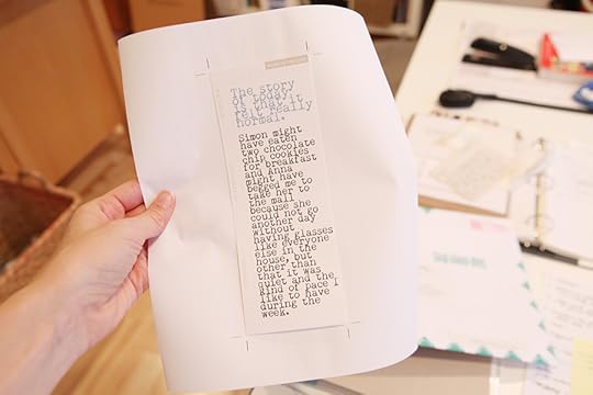I did one print to see what it would look like before temporarily adding the 3x8 card and running the whole thing through the printer. Sometimes this works on the first try and sometimes I have to run it through, make an adjustment, and do it again. Sometimes I also hold up the two pieces of paper to the light before running it through with the card attached so I can see more clearly where the type is going to end up.