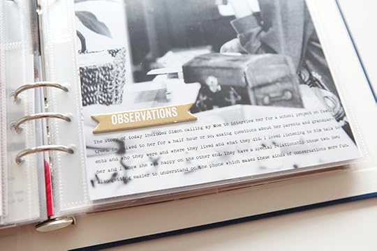 I ended the day with an enlarged photo of Simon + the story of the photo + the chipboard "observations" banner.