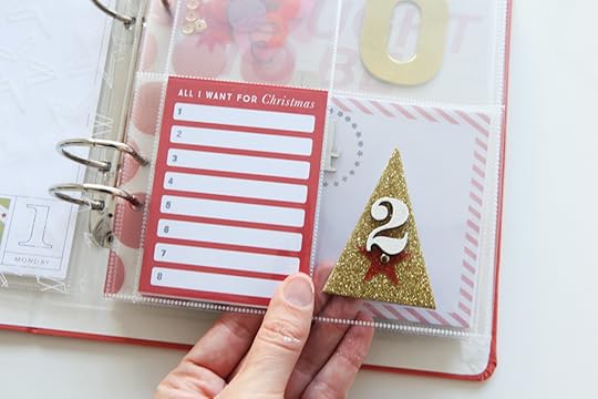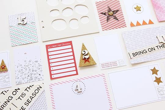 Day 23 currently features an overlay card + a gold glitter triangle/tree + a red plastic star + a mini-brad.