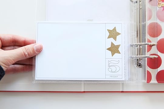 I added one of the gold glitter stars to the "o" of "more." This is one of those places where I'm leaving a little room to play during the month (no date set on the page opposite).