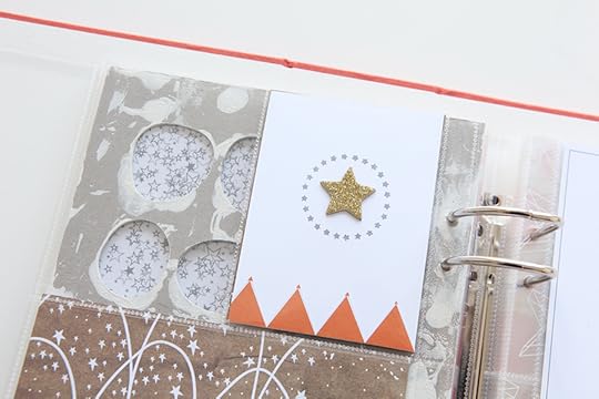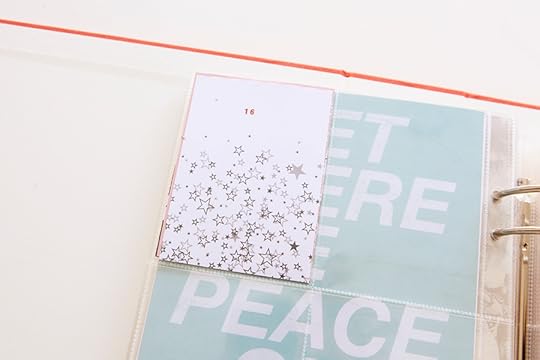 Behind Day 9 I added this star pattern paper - not sure what I'll add to it yet but I like it. You can also see the next transparent divider was added here - no rhyme or reason - just spreading them out within the album.