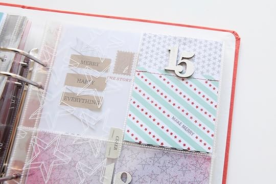Day 16 features a portion of that 6x8 star page + the number 16 stamped in red using stamps from the kit.