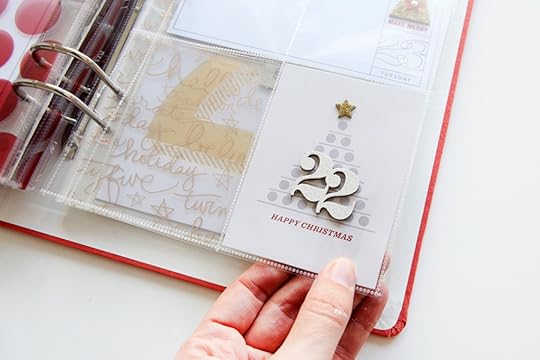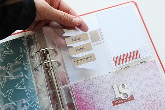 Next to the Day 17 card I cut out "merry happy everything" from the black background and added it to the pocket (love creating see-through opportunities).