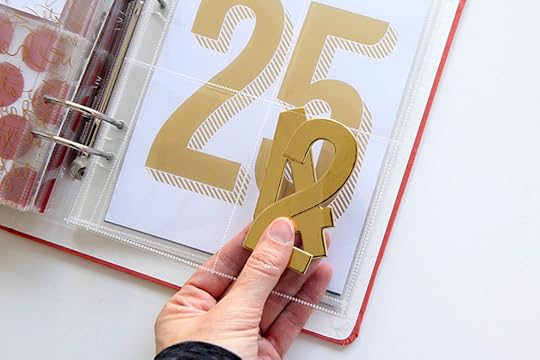 All I have for Christmas Day right now is that awesome big gold foil 25. I'll likely include more page protectors for Christmas Day since we tend to have more photos on that day (and like I said there are quite a few left-over to choose from).