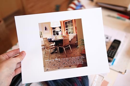 I cropped all those photos to 2x2, added my words and printed here at home (I put them all on an 8.5x11 canvas and printed them on that size photo paper).