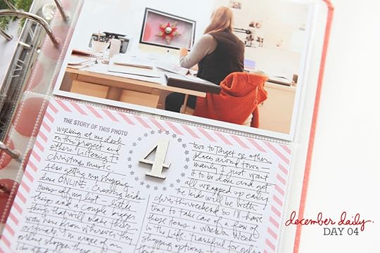 What's most important in a project like this, or December Daily® or anything really, is making it work for you. My focus this time was even more on words and photos. I used the kit as accents to my story. You might not need this many pages per day - take them out! You might need more pages - figure out a way to add them in (add photos back to back, etc). Don't limit you story because you have too many or not enough of something.