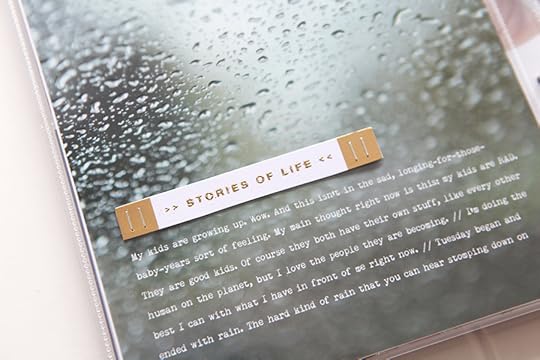 On top of the enlarged photo I added one of the gold foil label stickers - on top of that I had embossed "stories of life" from the stamp kit (in