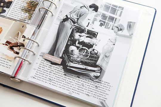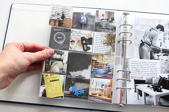2-inch Avery plastic tabs along the edge of the back-to-back photos. When I add photos straight in like that I really like to have some sort of tab along the edge.