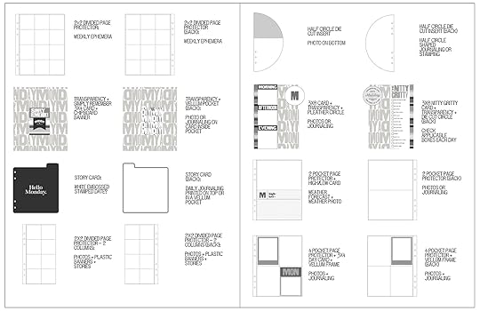 Hello “…day” cards - I will use these to write my intentions/goals for the day Big plastic words on white transparency - add vellum stars, sequins, or other embellishments to create a title page for each day. Morning, Afternoon, Evening - Meals, or Wellness activities throughout the day like Meditation, Exercise, Naps (lol), etc.On the back of the 3x8 card, I'd like to put my Outfit of the day Vellum pockets - I can use these for my Daily Gratitudes at the end of each day or to document recipes of my meals if used opposite the above cards for meals. I love the idea of using the high and low cards for the weather - I typically don't register/remember what the high or low of my days are so I feel like this is a great way to pull out additional details of the day, and I was pleasantly surprised to see the weather in my 2021 album. The 3x4 Mon - Sun cards are also great ones to document a daily gratitude list or if you have one thing per day or a word/phrase per day the 4x6 Monday - Sunday card works well too For the mini kit, the You, Me, US cards are great for documenting things that we did separately and together as a family. I am looking forward to doing that this year. The 6-circle page is great to use as a family introduction page one circle for our details and the other for our photo. The vellum circle pages I'd love to use to collect ephemera. The half circles will be used for my journaling summary of the day