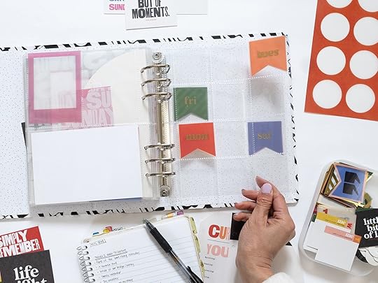 But, for me, I really want to finish this project soon after the documenting week. I’ve found the best way to do this is to come up with an album plan ahead of time. This helps guide your documenting week and it lets you play with those products when you’re excited about them! For the past few years, I have laid out an album formula ahead of time and started to put my album together. I’ve slipped things into the pockets, added larger pieces into my album, and even created some custom pieces ahead of time. This definitely helps cut down on the work that is needed to finish the album afterwards.