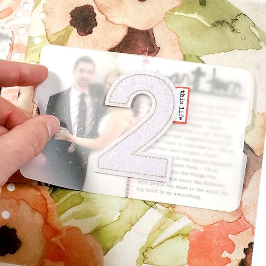 On top of the vellum I added a felt number (from December Daily®) and used the tab stickers + a "this life" stamp from the Pieces Of Me Stamp Set.