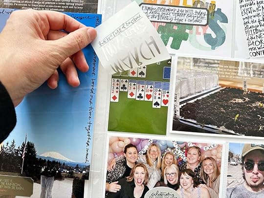 I added the "March looks like this" vellum using staples to the outside of the page protector. One too many games of Solitaire this past month!