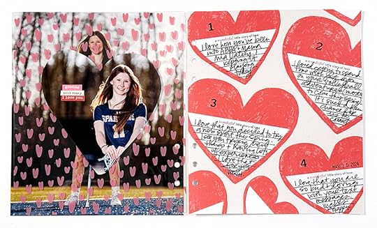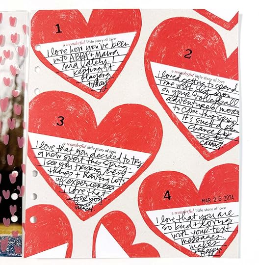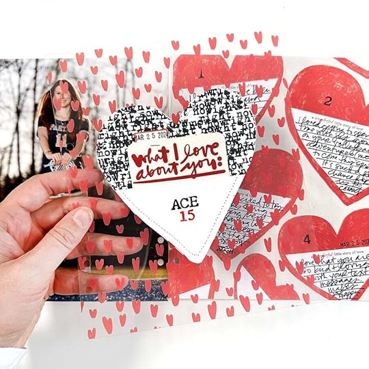 I used a Slickwriter to add my story directly on top of the hearts on the prompt pattern paper. It's an easy, fun home for your words!