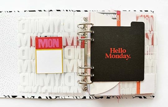 On top of the transparency I adhered the vellum day of the week pocket card from the Main Kit.
