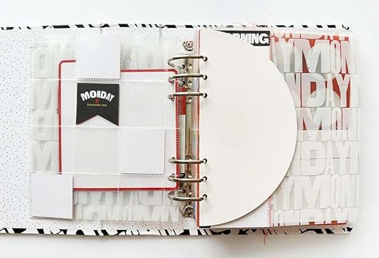 Next up is the 1/2 circle die cut page. It's pretty likely that I'll include one or two full page photos for each day and I'm thinking that I'll do that around this 1/2 circle insert. Depending on what I choose to do with photo enlargements I can either use this 1/2 circle for journaling or another photo/collage of photos.
