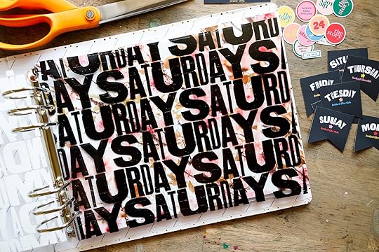 maybe quotes from family members (think cut up strips of black type on white paper) maybe circle punched photos (small ones that would be collaged around the title) use a white POSCA paint pen to handwrite something on top - such as a note to self or other memory from the day maybe just leave it as it is