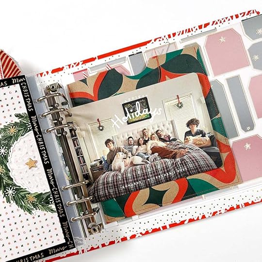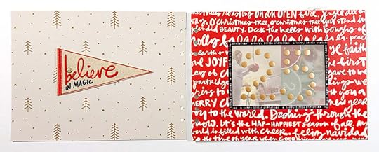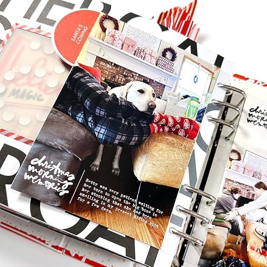 After turning the intro/frame page you'll find three, 5x7 pages that feature photos with word art (Christmas morning memories) and journaling and a full page of memories without photos. I used plastic page attachers to add these to the album but you could also simply punch holes in your photos.