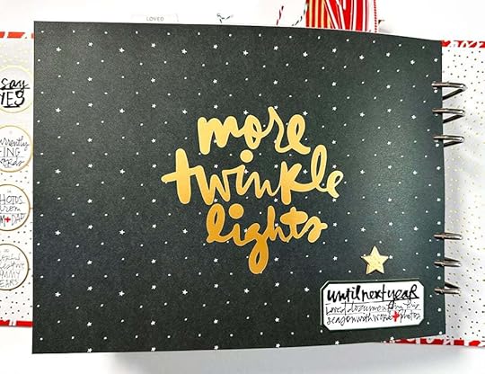 To finish off my album I added the "more twinkle lights" pattern paper to the back. On top I added a little message and a chipboard star.