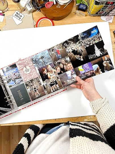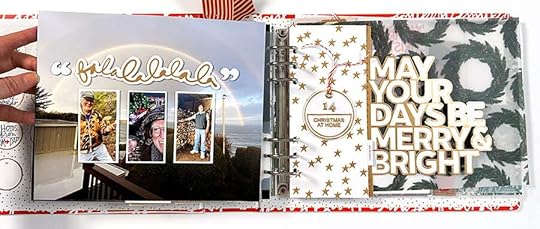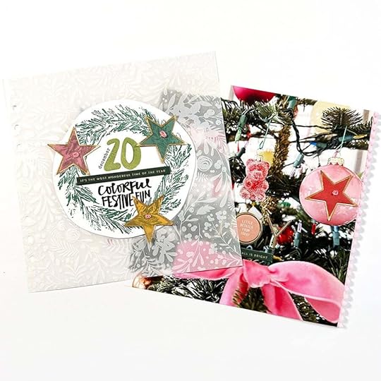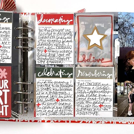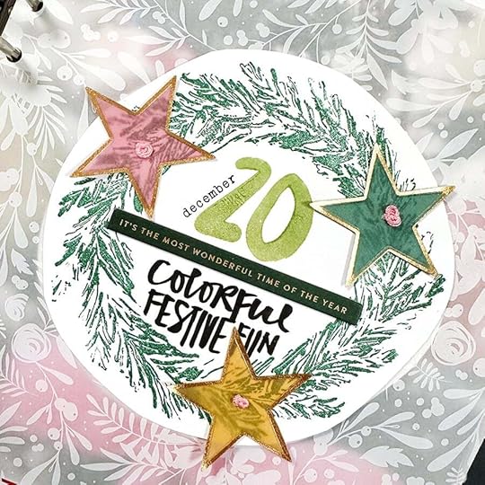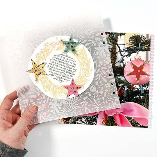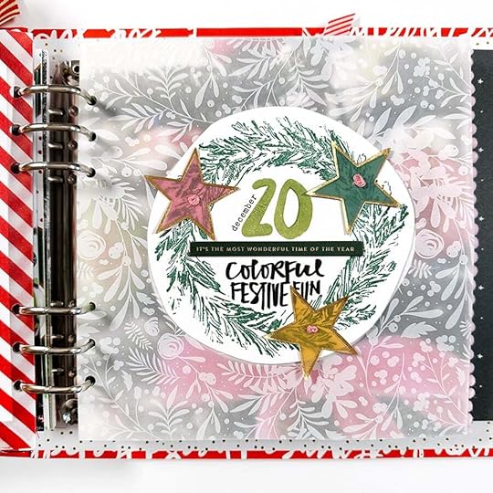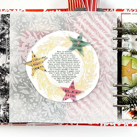 SUPPLIESDecember Daily® 10x8 Album December Daily® Main Kit (digital available) December Daily® Specialty Paper Pack (digital available) December Daily® Wreath Stamp December Daily® Holiday Phrases Clear Sticker Sheet December Daily® Gold Foil Alpha Puffy Stickers Stories By The Month Vellum Stars December 2023 Tim Holtz Rub Ons (similar) Colorful Vellum Star Punch Embroidery Thread Red Line Tape Maco Sticker Paper Stamping Platform Versamark Embossing Ink Ranger Embossing Powders: Buttercup, Vintage Pearl, Blush Pearl, Pink Neon, Snowflake Tinsel Snappy Tray Pom Pom Trim Little Plastic Pot for custom embossing mix Additional basic supplies via my Amazon storefront