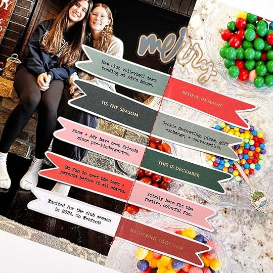 Last night Anna had a team + family bonding gathering for her new club volleyball team. There was cookie decorating, a gift exchange, and fun conversations for the players and the parents. To document this story I played with adding custom sticker paper journaling on top of the banner pattern paper.