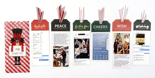I added eyelets to the holes at the top of each tag and used ribbons from this year's
