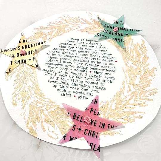 I woke up this morning with a page idea and I started down that path and decided it just wasn't what I wanted/needed for today so I did a full pivot to tell the story of these gummy bear ornaments that finally arrived after being backordered for a couple of months (ordered from Terrain + no longer available). They are definitely fitting in with my colorful, festive fun vibe this year.